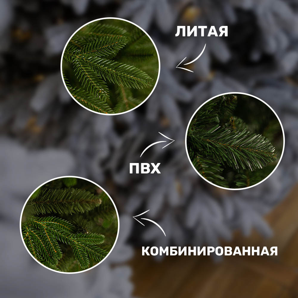 - Литые иголки — выглядят максимально реалистично, не мнутся, служат до 15 лет.